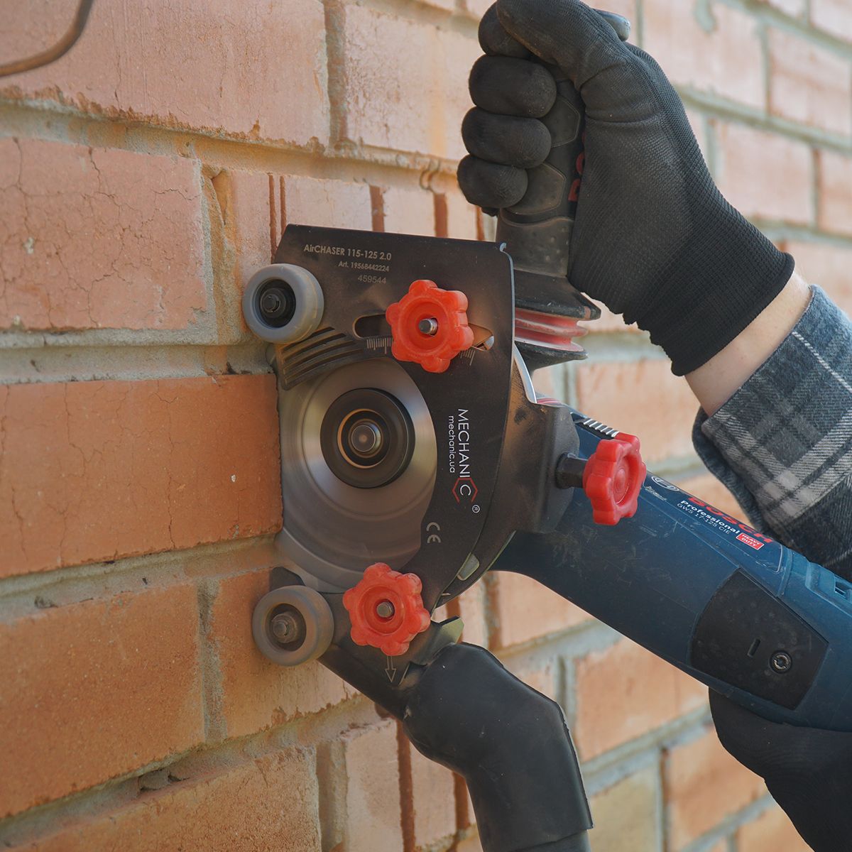 Zamień szlifierkę w bruzdownicę! AirCHASER 115-125 mm zapewnia precyzyjne wycinanie rowków pod kable i rury z pełnym odsysaniem pyłu, regulacją głębokości cięcia oraz płynnym poślizgiem dzięki gumowanym rolkom.